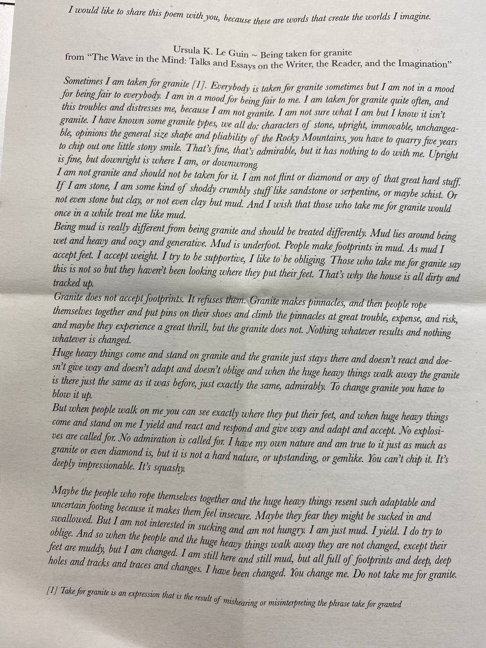 Sometimes I Am Taken for Granite
